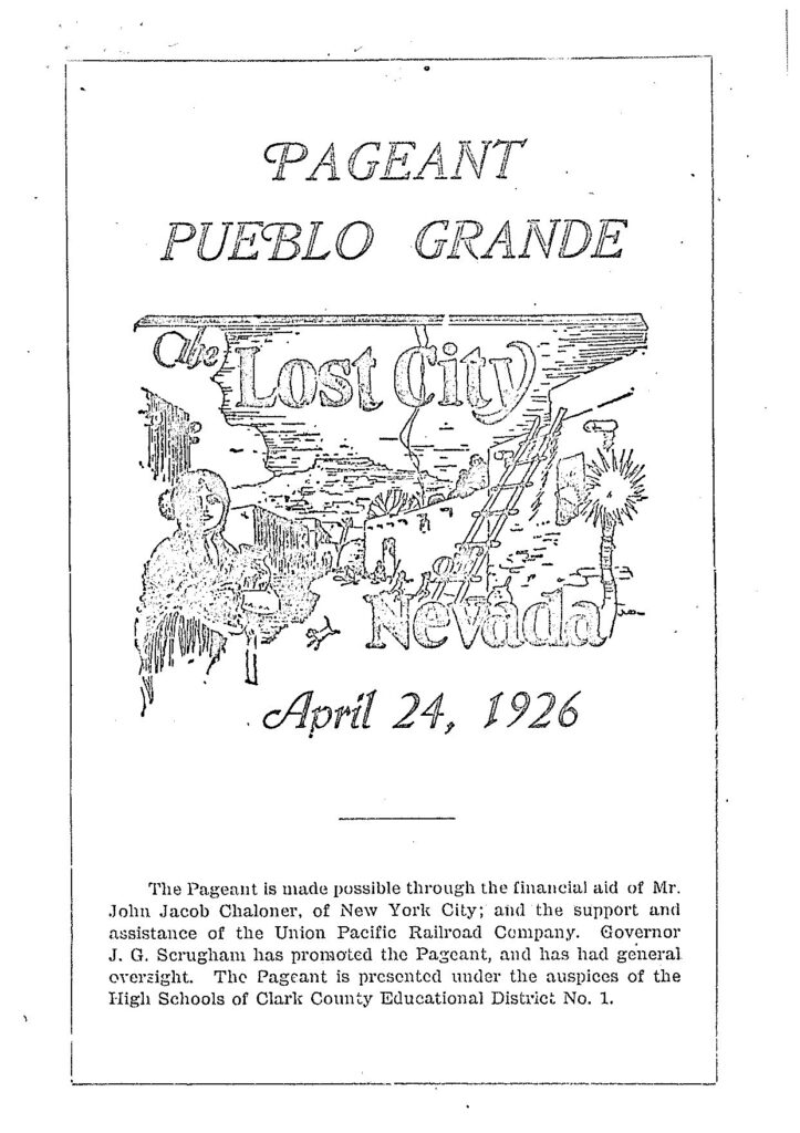 Celebrate 100 years of history at the Lost City Museum! This special exhibit explores the Lost City Pageants of 1925 and 1926, which captured public curiosity and drew attention to the archaeological discoveries unfolding in southern Nevada’s Moapa Valley. These pageants helped inspire the creation of the Boulder Dam Park Museum—now the Lost City Museum—in 1935.